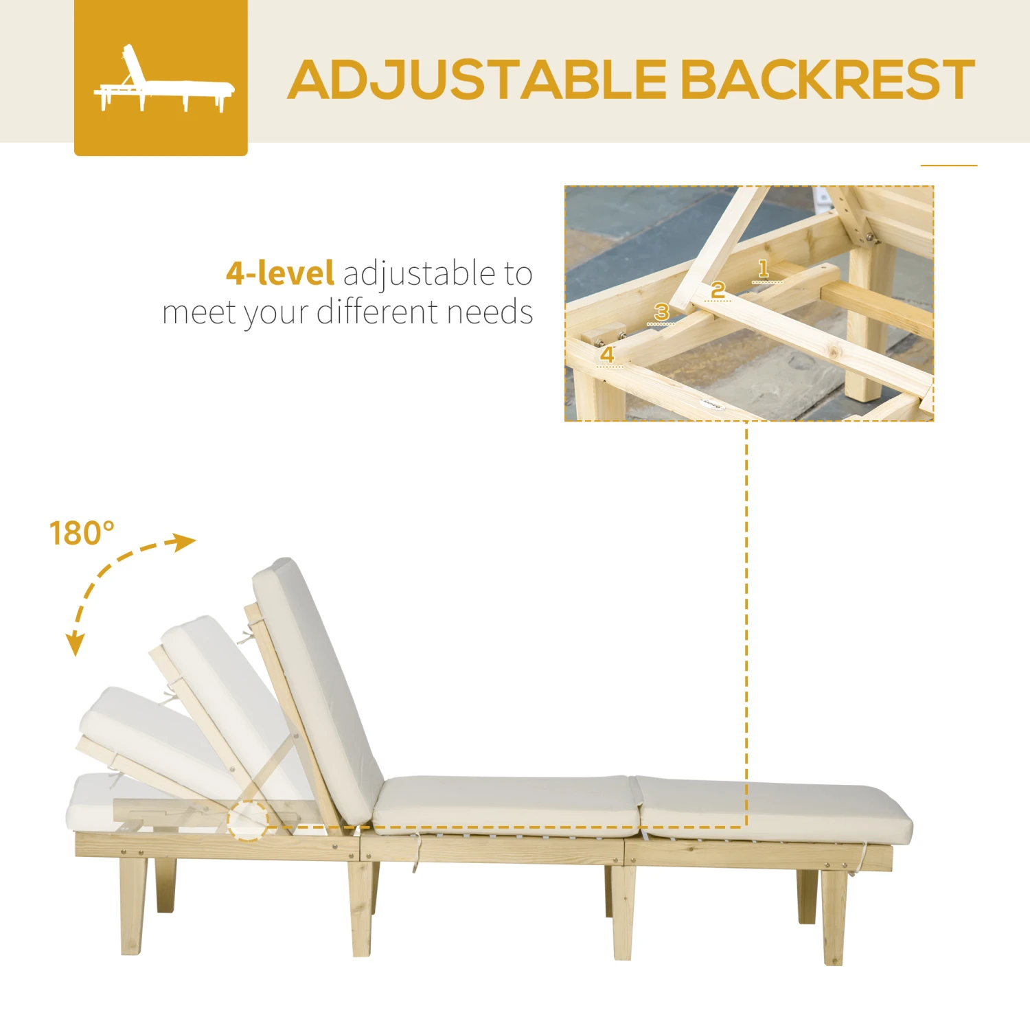 Lounge around in the great outdoors with Outsunny. Outsunny has a reclining chair with an adjustable backrest to suit your preference, even if you want to lay flat. Plushy padded furniture with cushion to cover its entire surface, seat to backrest, it’s easy to get cozy. So, sit down, sunbathe, or even take a snooze. The cushions strap in place, so slipping won’t be a worry while you lay down. Get out, get comfortable, get Outsunny.