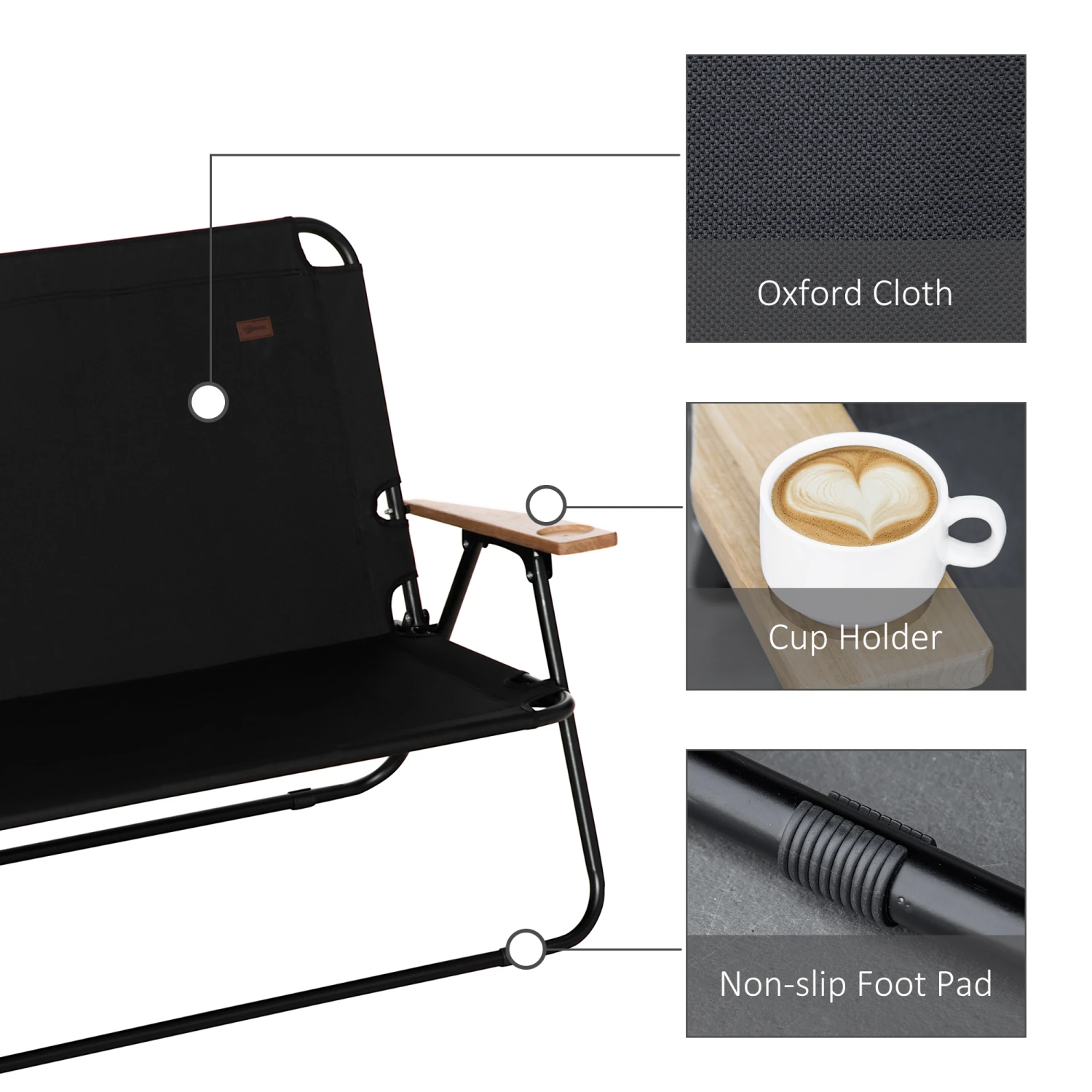 Pack less and bring more with Outsunny. Outsunny has a camping chair with a loveseat design to bring twice as many chairs in a single trip. Invite a friend; it seats two adults with a cupholder on each side. Capable of carrying 352 lbs. yet only weighing 12; bring it to a barbeque, camp site, or picnic. It folds flat so that you can keep it in your trunk. Grab our folding loveseat by its handle, and you two are ready to go wherever the summer takes you. Get out, get comfy, get Outsunny.