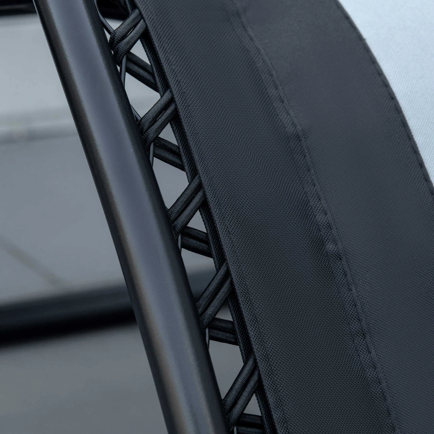 Blast off those shoes and tell Houston to put the lemonade on standby; next stop is zero-gravity comfort. The bungee suspension of this outdoor recliner provides lumbar support, and distributes weight, reducing pressure and stopping soreness. Lay back into your favorite tanning angle; our outdoor lounge chairs have a reclining backrest that can lock into the angle of your choice. A patio chair that’s cushioned, comfortable, and includes cup holders. Get out, space out, get Outsunny.