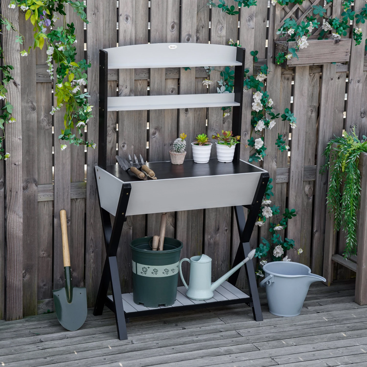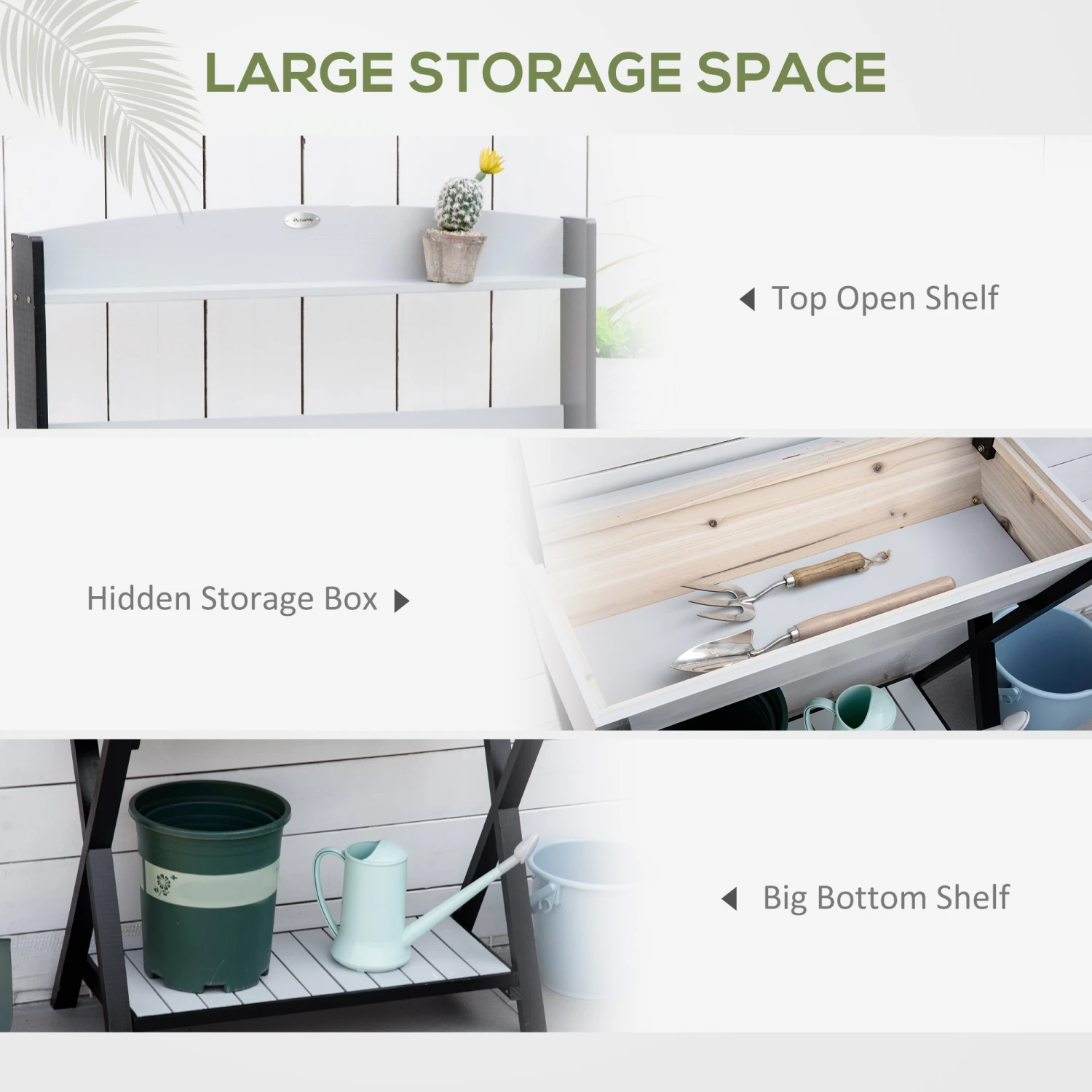 This outdoor potting bench from Outsunny has especially outstanding functionality to bring an excellent addition to your garden. The fir wood construction means it’s tough, durable, and suitable for indoors and outdoors. And our gardening tables for outdoors features two small shelves and a bottom shelf for a handy holding room. The tabletop of the planting table can be opened easily to be a storage box. Check out this practical potting bench and add convenience to your life outside.