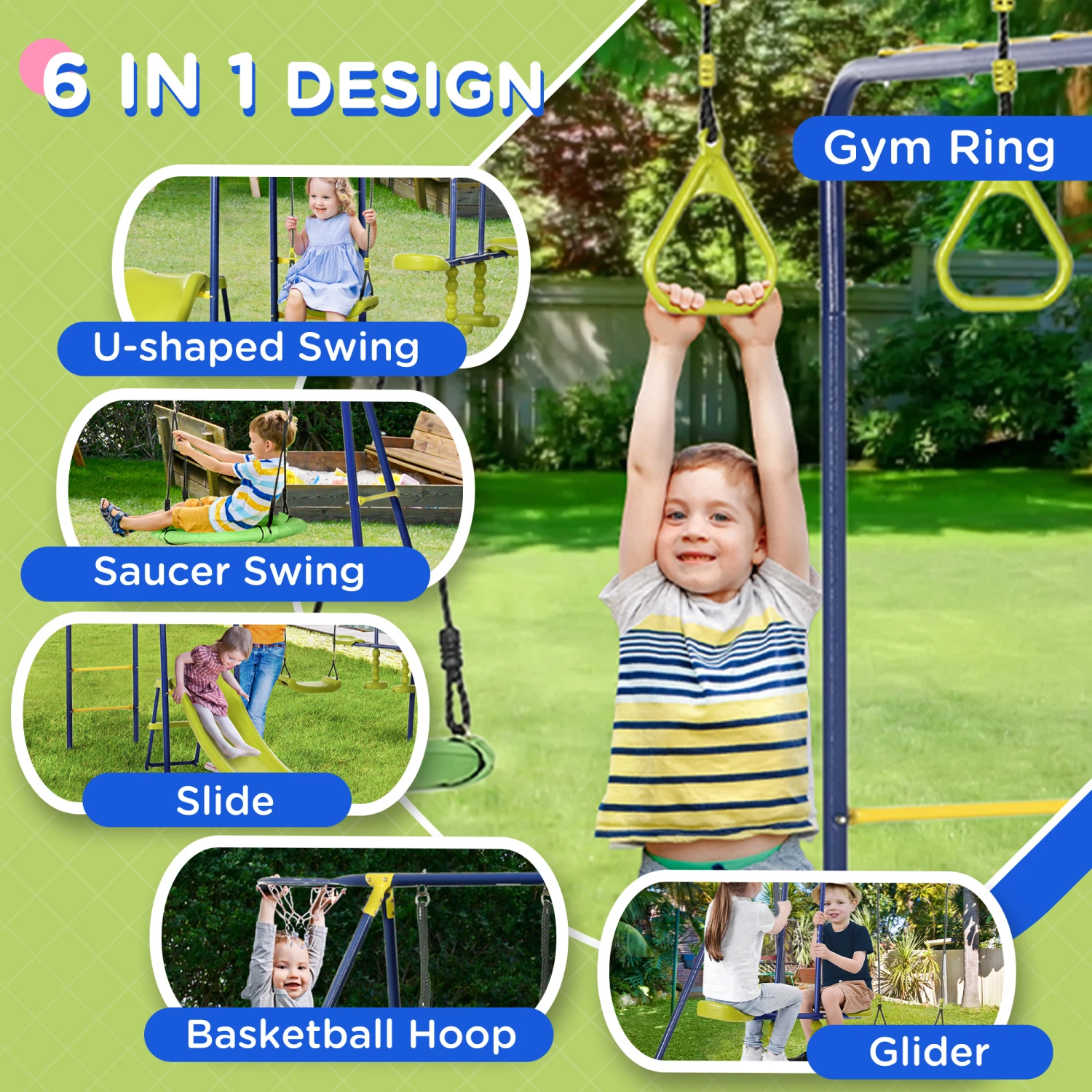 - – A U-shaped seat, a saucer swing, a glider, gym rings and a basketball hoop