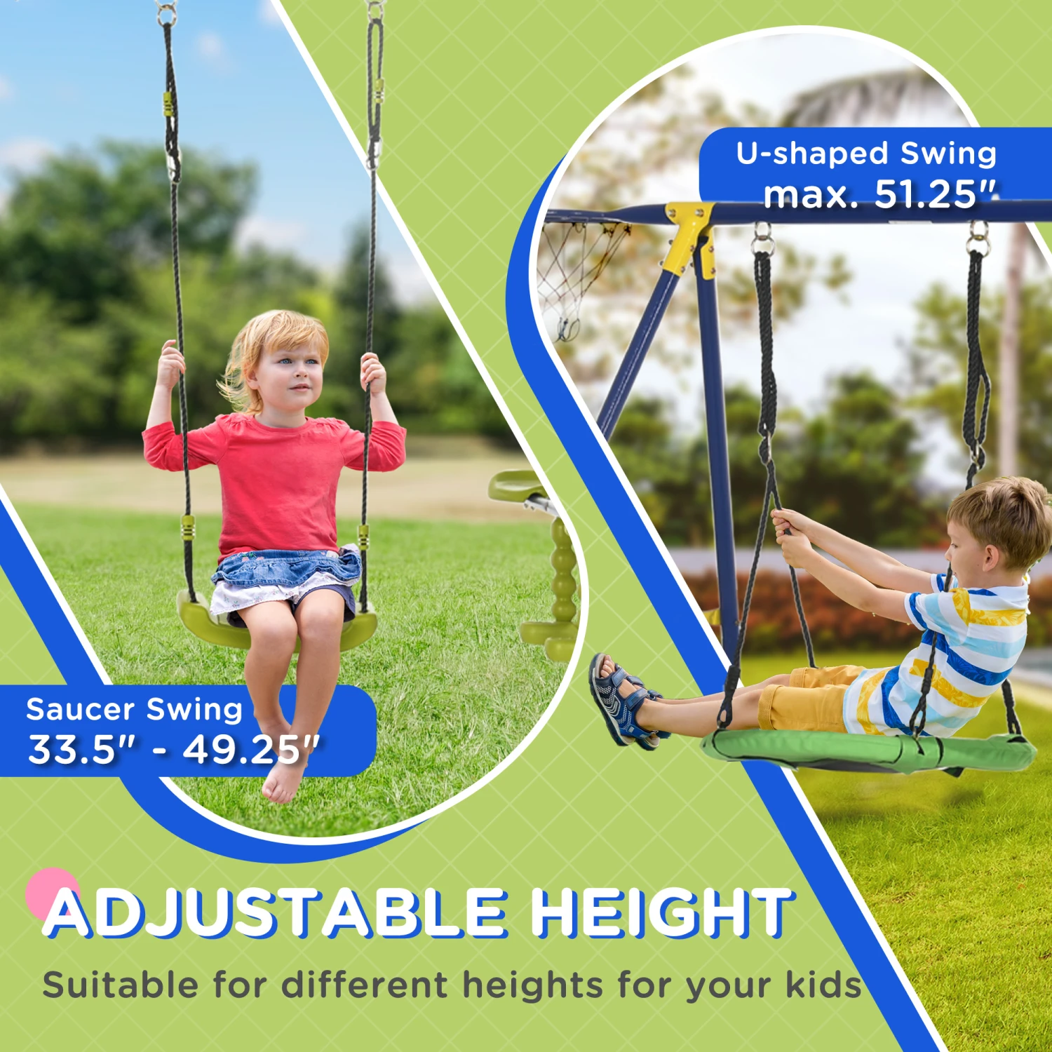 - – Adjustable height for saucer swing between 33.5″ – 49.25″