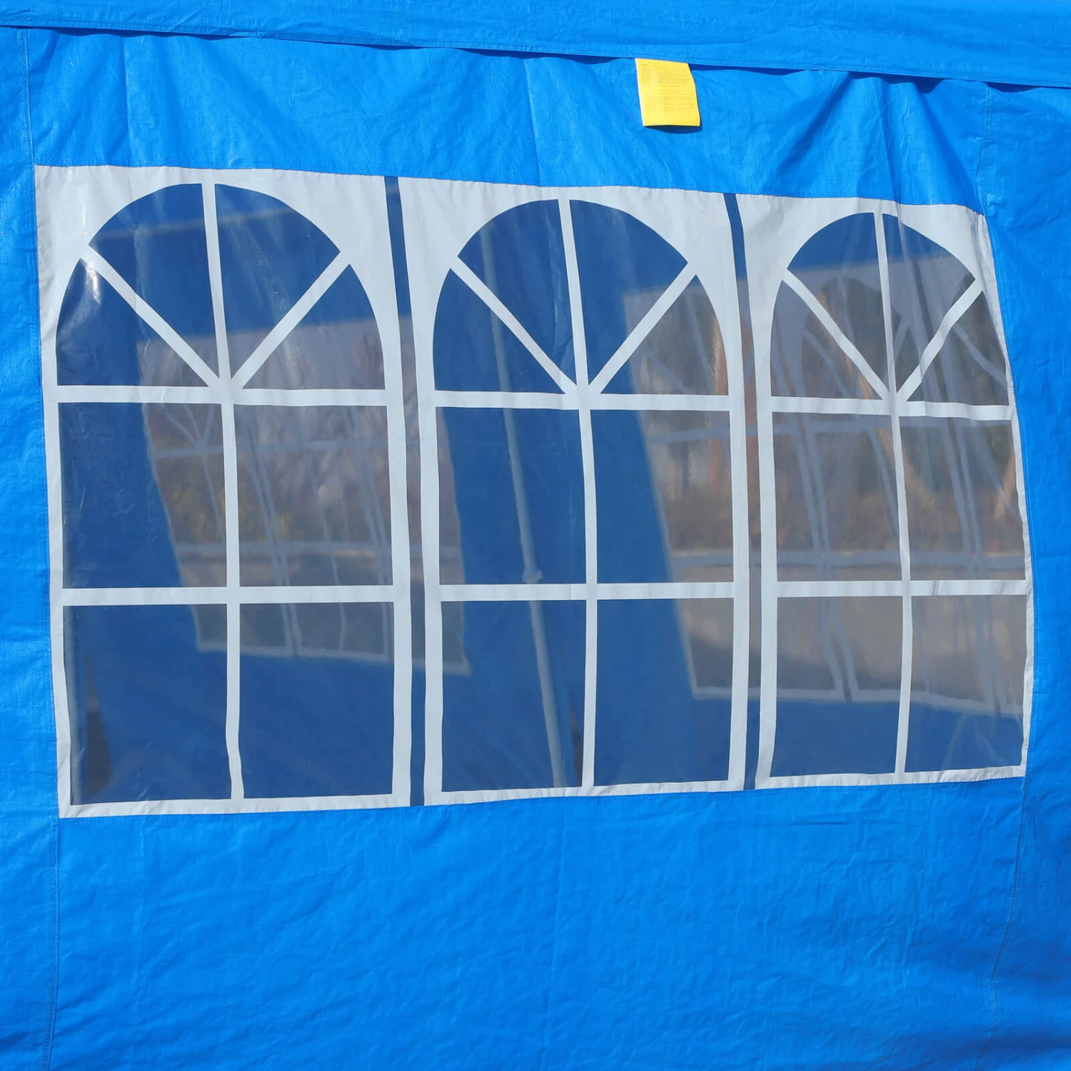 - NOTE: For easiest set-up it is best to have at least 6 people to assist. As this is meant as only a temporary event tent, we do not recommend leaving set-up over several days, in windy or adverse weather conditions. Additional side walls are available and sold separately.