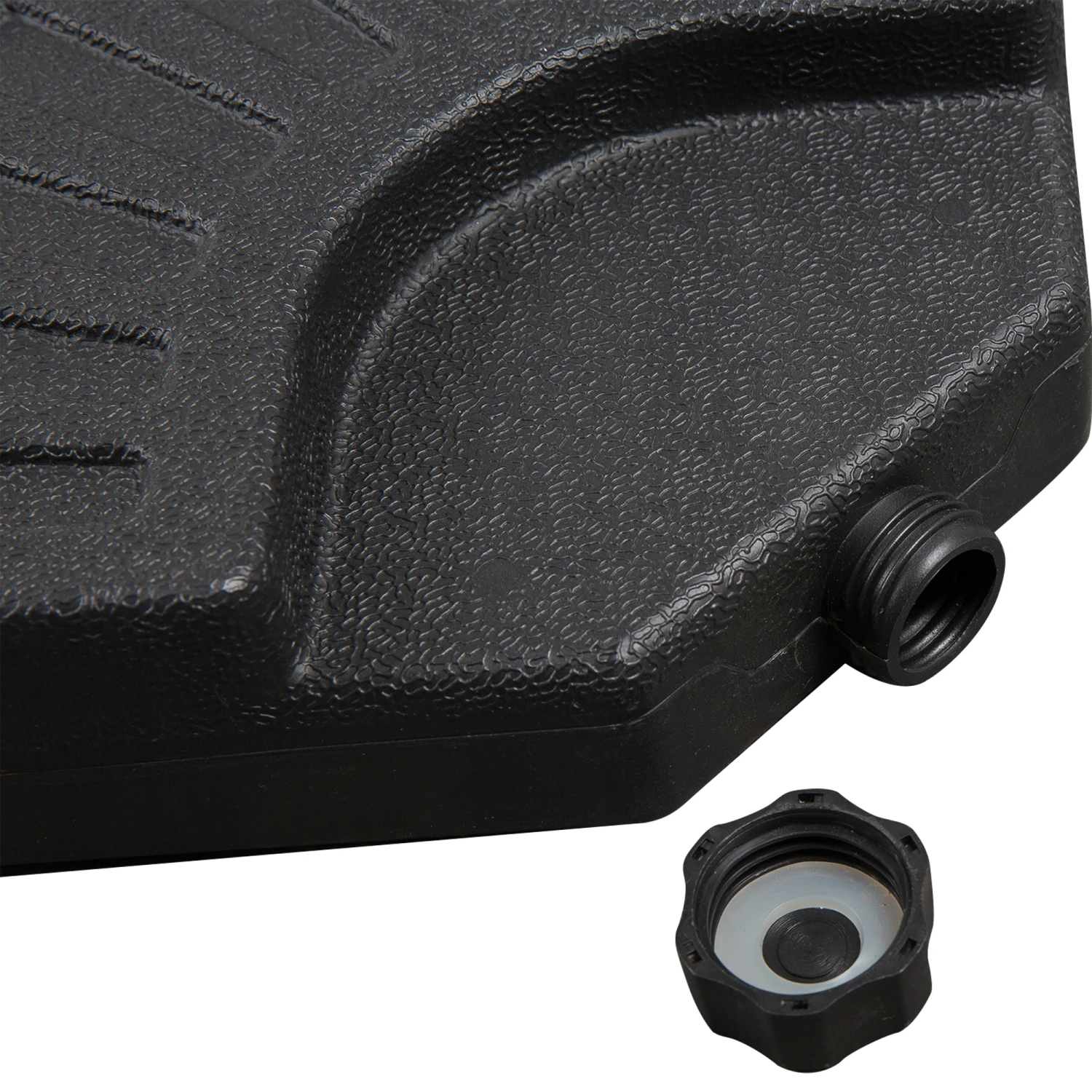 If you have a large umbrella for your deck, patio, or outdoor seating area at your home, you need a strong, sturdy base to keep in anchored. This sturdy base from Outsunny is just what you’e been looking for! Made from durable and weather-resistant HDPE material, this umbrella base sits over your umbrella cross base frame to keep it secure and stable on the ground. Two wheels attached to the underside of the base make this item easy to move around your patio or deck. Featuring an easy to fill spout located on the top of the base that can be filled with sand, water, or a mixture of both to achieve the weight you need to anchor your umbrella, as well as a side spout for quick draining; (NOTE: Umbrella post is not included, this is only the base for the post)
