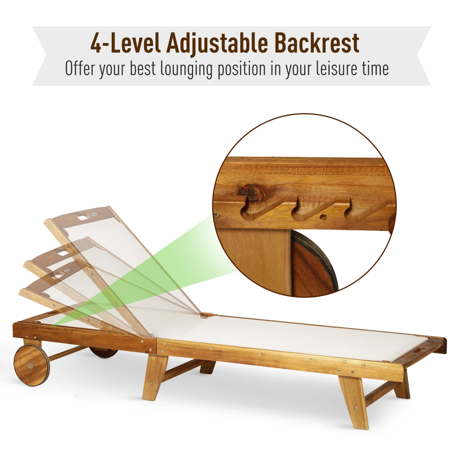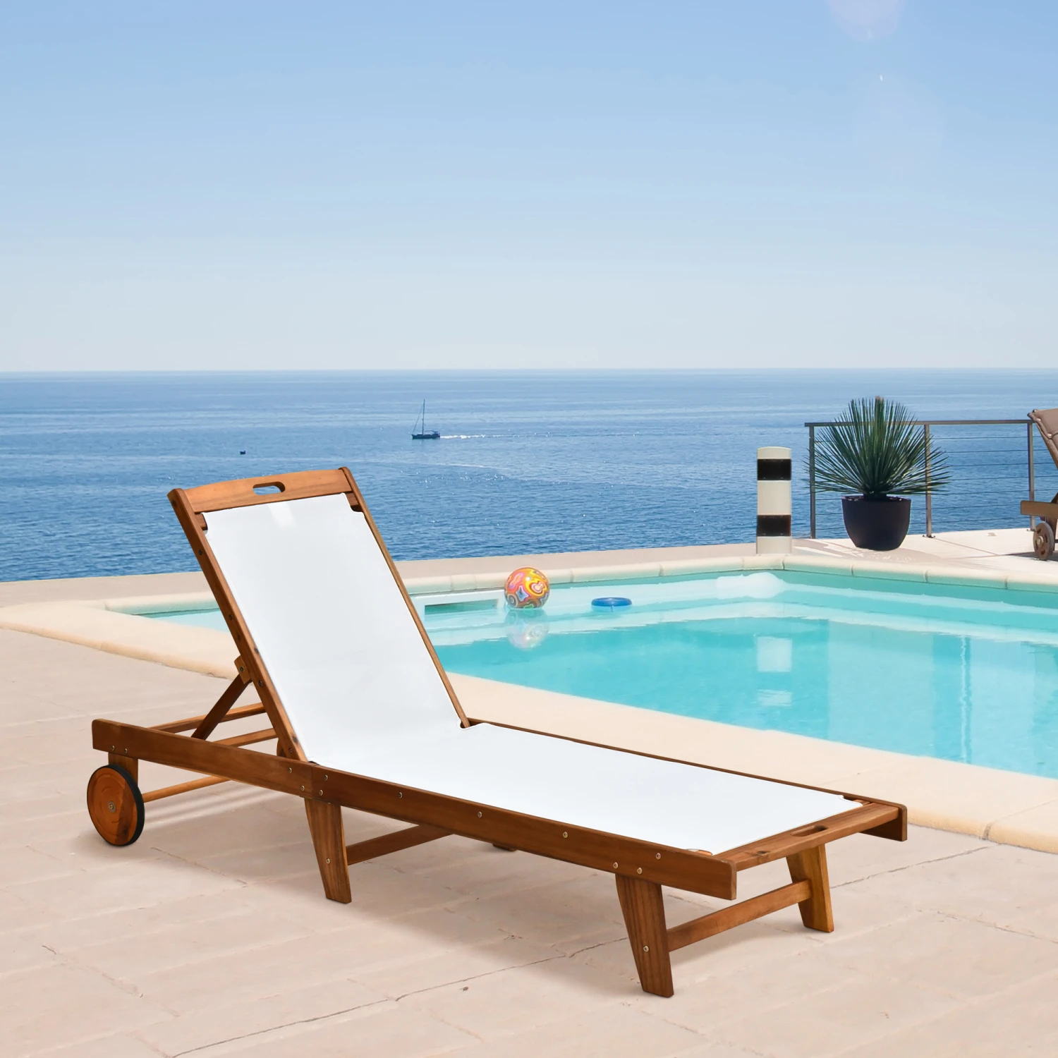 Give yourself the freedom to relax with your favorite book or take a nap under the summer sun with this refreshing chaise lounger from Outsunny! Made from sustainably sourced acacia wood with a special breathable mesh fabric for the seat, this lounger is both comfortable and stylish, as well as weather resistant and highly durable, so you’l enjoy years of reliable use. The backrest of the sun lounger can be adjusted to your liking, so you’l always find the most comfortable position. Easy to clean and low maintenance, this lounger combines style and functionality, and will add a touch of rustic charm to your patio, garden, deck, backyard, or any other outdoor space. Easy assembly is required.