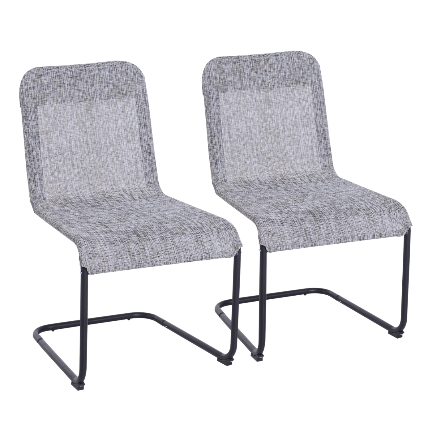 This 2 piece set of stylish texteline chairs from Outsunny are great for backyard drinks and relaxing chats with friends or family members. Featuring a powder coating metal frame with texteline seating area these chairs have an optimal design for outdoor use. With a highly-resilient texteline surface and great breathability covered on a bow-shaped base they can ergonomically fit your body shape and you can enjoy slightly rocking motion in your leisure time. The lightweight design allows you to move this set from one place to another with great ease. You can pair them with your dining set near the pool or use them with your main dining set a great addition to any of your existing home décor!