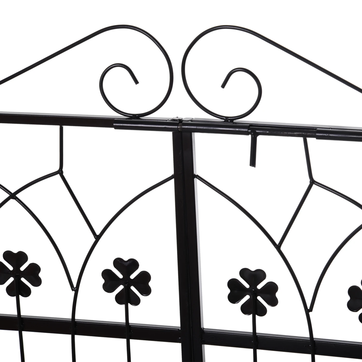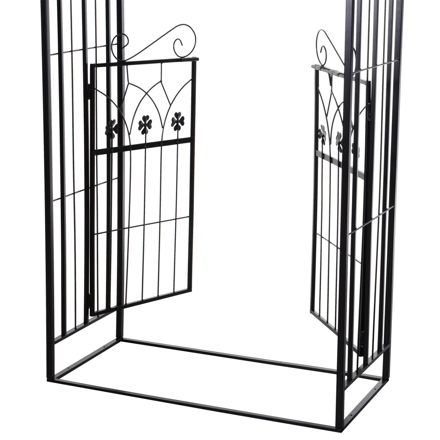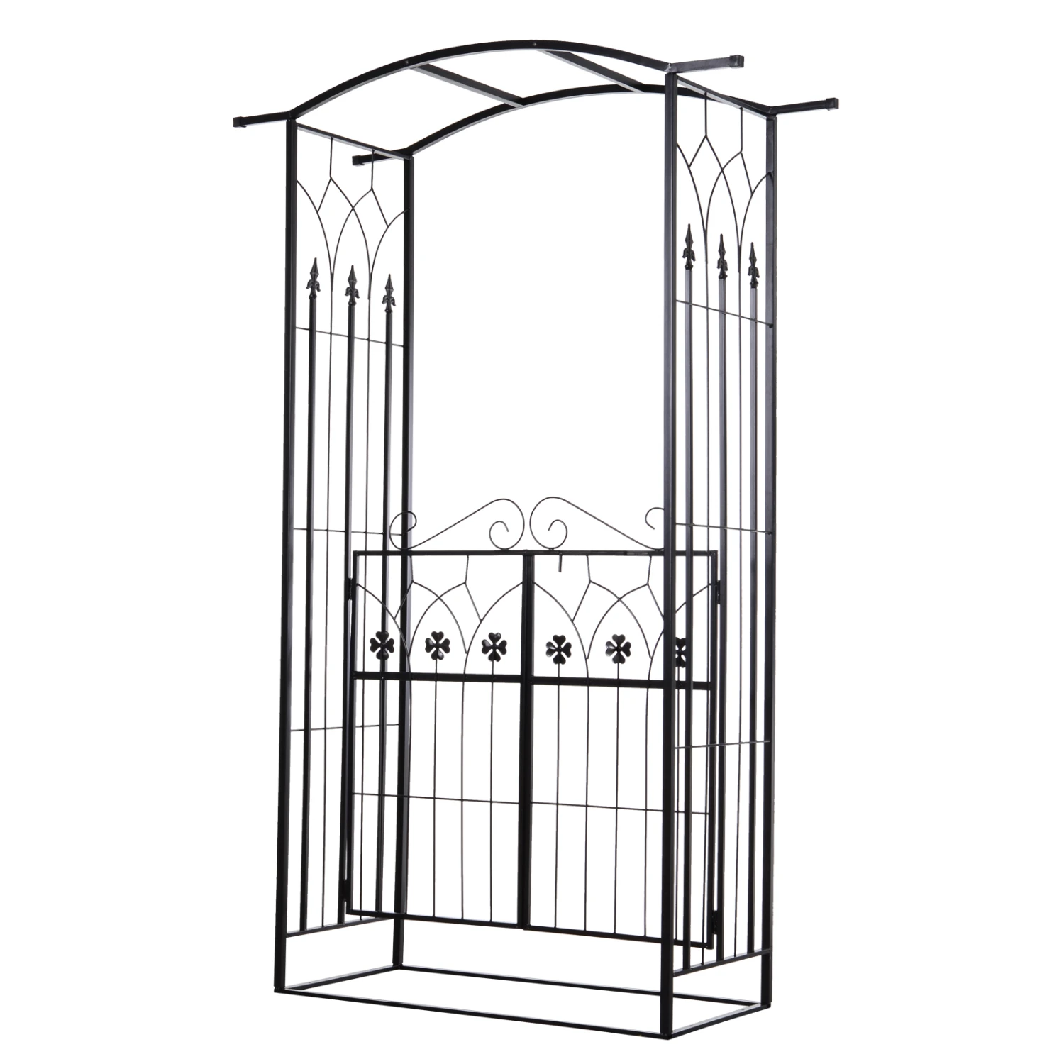 The classic design of this Outsunny trellis provides an easy and attractive way to add an elegant feature to your garden. Use it in your everyday life as an attractive arbor for climbing plants or decorate the arch with flowers or balloons for weddings and other special events. The latched two-door gate features intricate scrollwork and 4-leaf clover for style and good wishes. Perfect addition for weddings ceremonies and other outdoor events.This metal pergola perfect addition to your wedding ceremonies and other outdoor events.