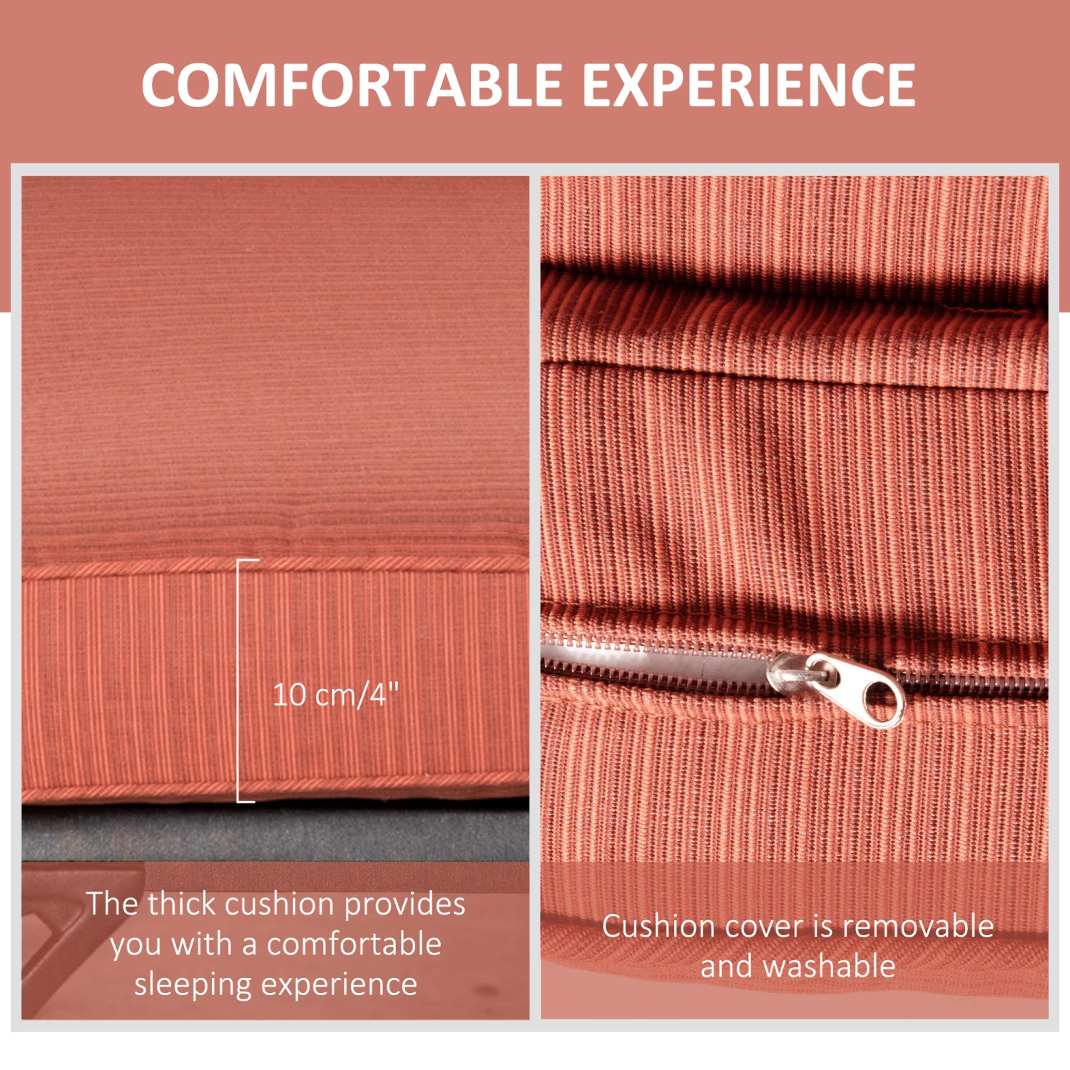 Our two-piece outdoor lounge chair set offers an optimized approach to portability, comfort, and esthetics. When you order our lounge chair, you get elegant lattice patterns and armrests curved into flourishes built into a light an, easy-to-move frame. This chaise lounge folds flat, and wheels away yet is fully cushioned, reclines, and holds up to 440 lbs. An excellent sun tanning space, it comes with a matching table for drinks, books, or tanning accessories. Get out, get comfy, get Outsunny.