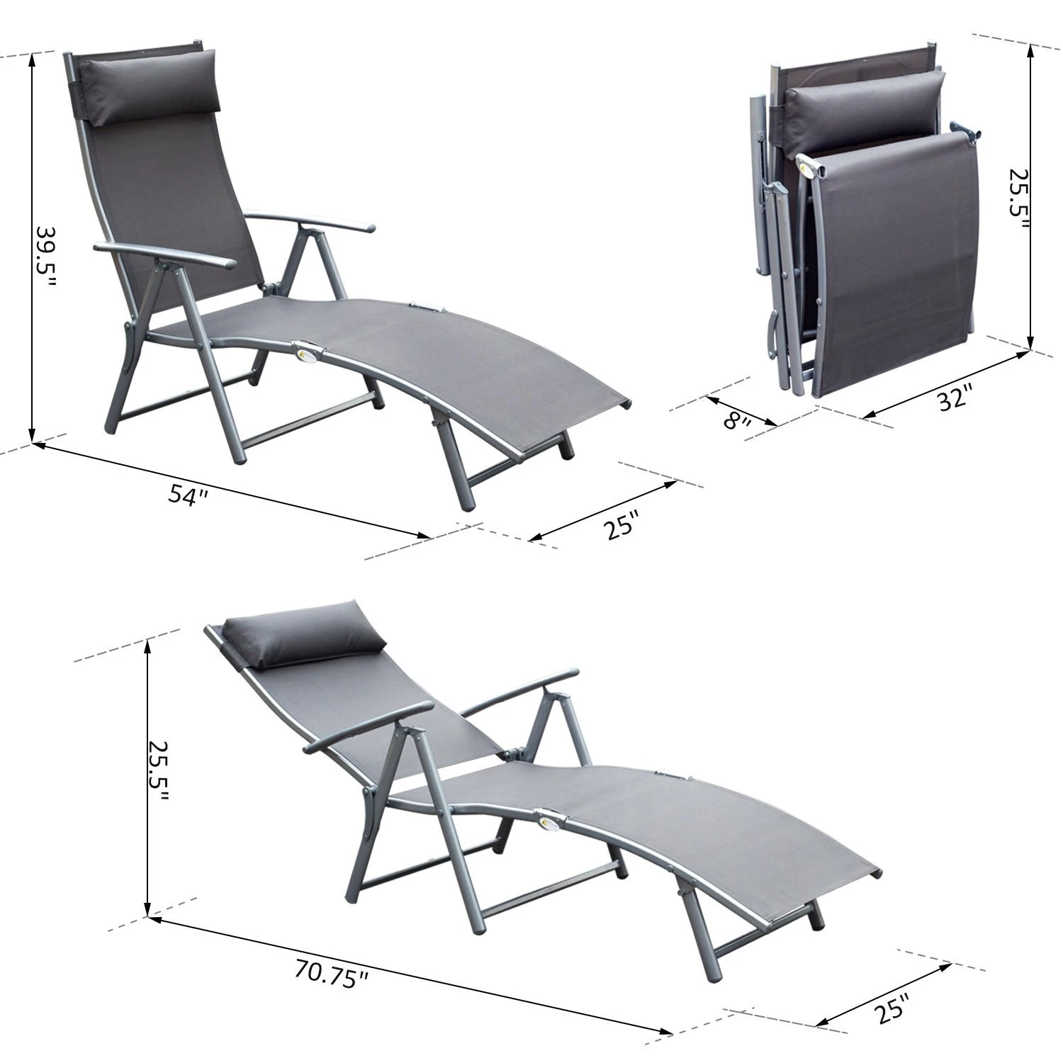 - – Beach chair with a seven-level adjustable backrest and pillow for your head