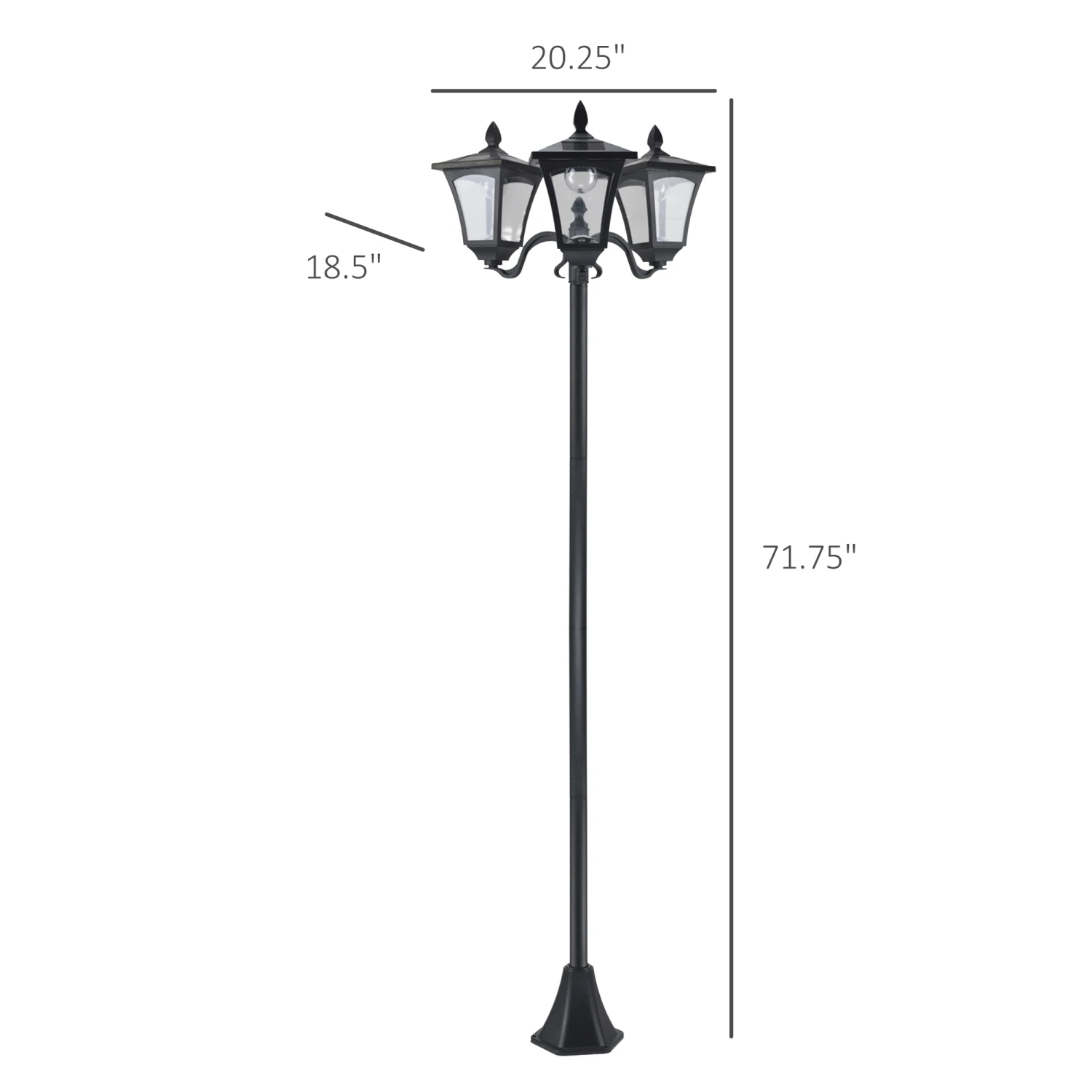 – Stainless steel lamp post connected with a removable plastic base for stability and durability
