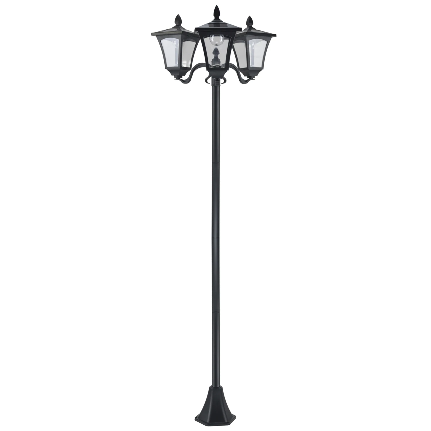 – The energy-efficient garden lamp features 3 lights and 4 pieces of a-Si solar panels