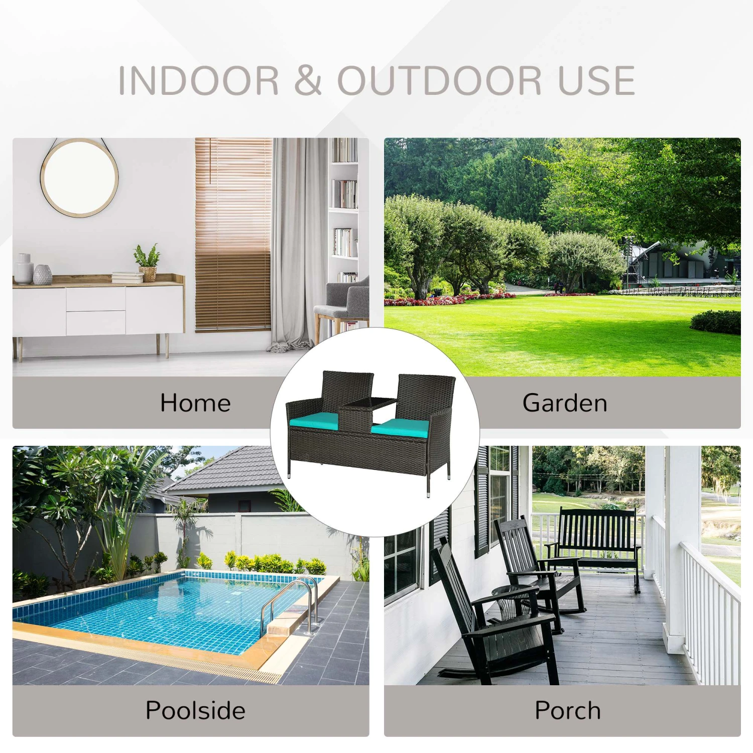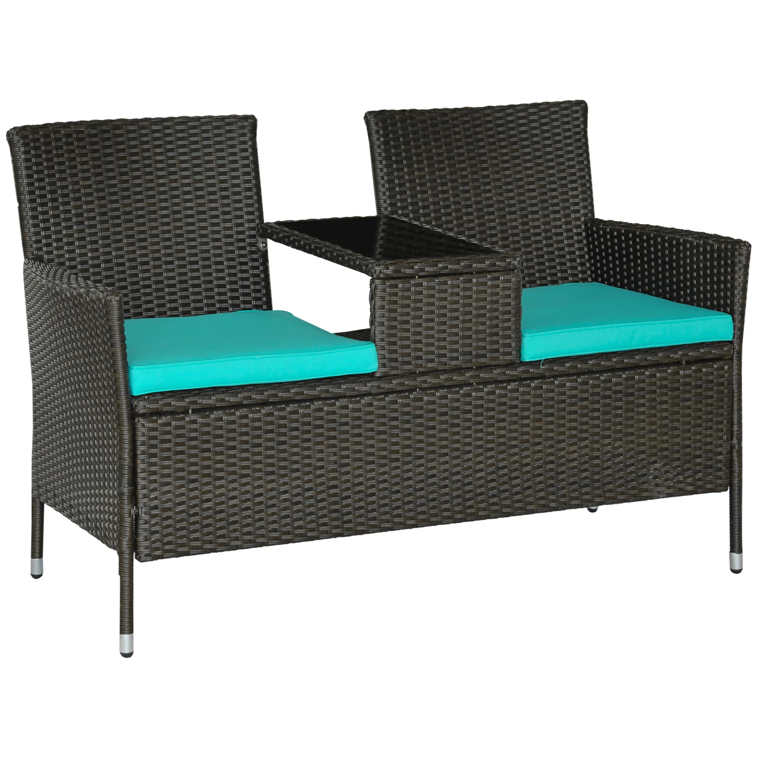 Need a table? Need seating? How about both? Outsunny has a 2-in-1 patio furniture set that’s a loveseat with a tempered glass table built into the armrest. Each seat has a soft cushion, and the surface was hand woven with PE rattan for a water-safe build. Reinforced with a heavy-duty steel frame, this combo couch can hold 755 lbs. total. It’s easy to move as a 2-in-1 set, and easy to clean with a wipeable table and removable cushion covers. Porch, patio, or balcony, have it all with Outsunny.