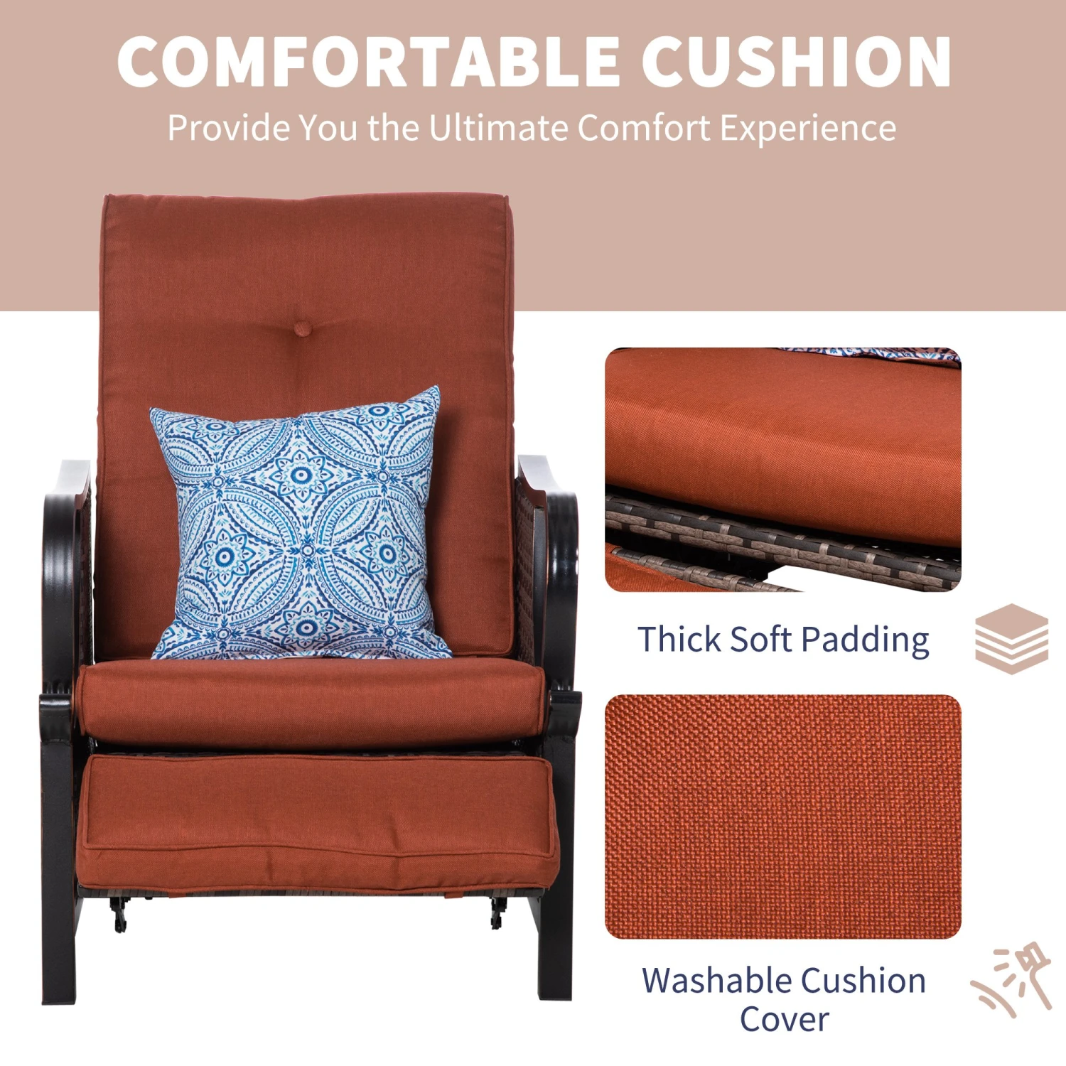 Add a unique designed chair to your outdoor space with this Outsunny. The chair made of lightweight aluminum frame with weather-resistant wicker ensuring durability and protection. The chair with backrest adjustable not only gives you space a modern look but also offers incredible comfortable lounging experience. Soft cushion and wide armrest provide extra comfortable. This outdoor rattan leisure chair from Outsunny is a perfect addition to your weekend relaxing moments.