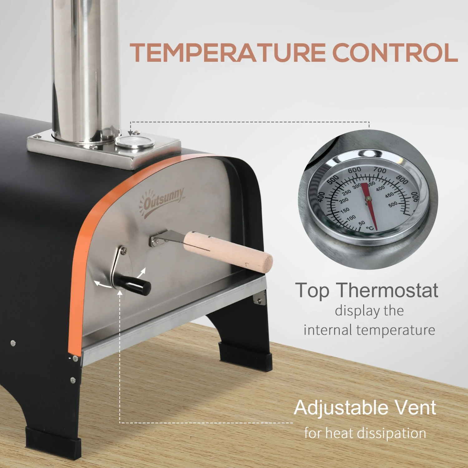 - – A vent and thermometer help you optimize the temperature