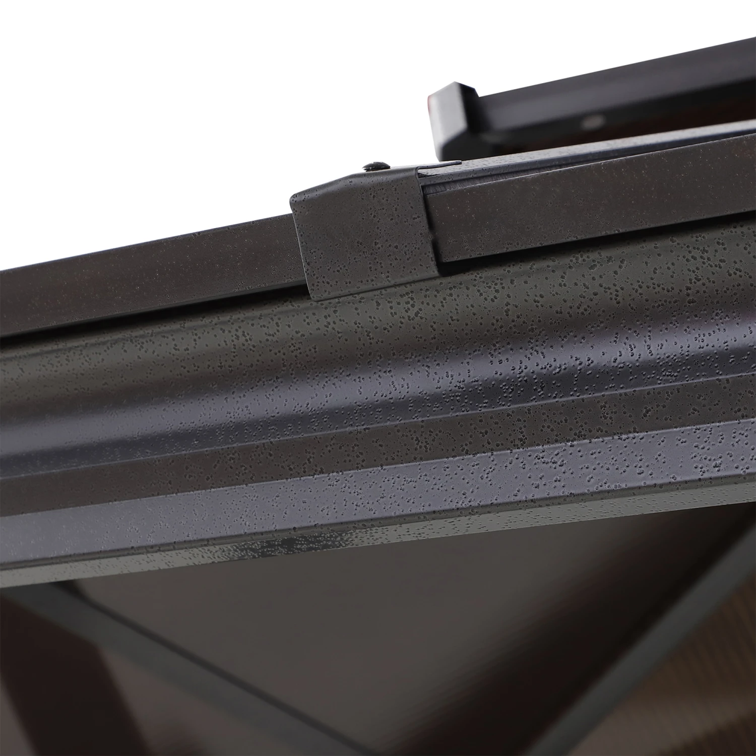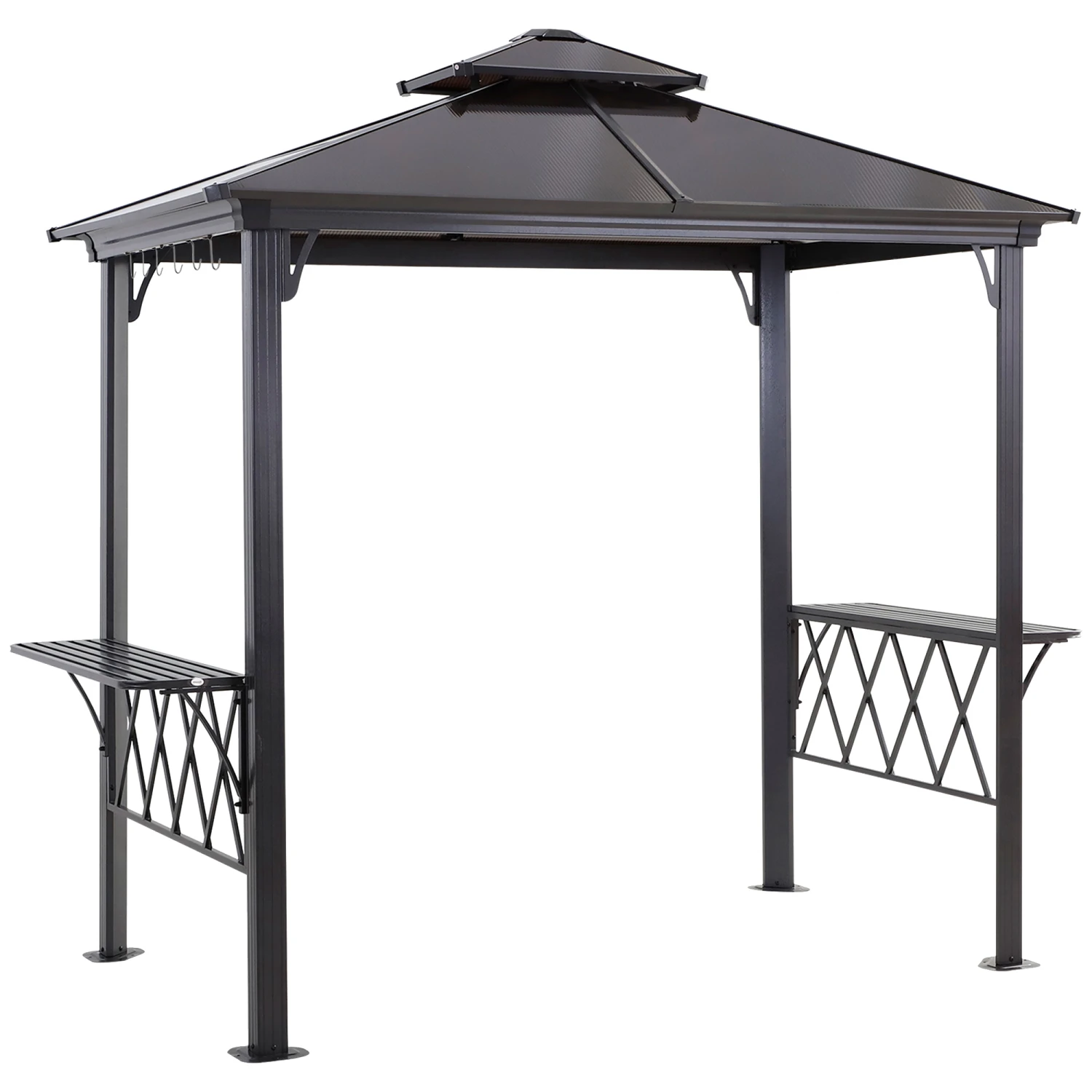 Tired of getting barbecued while barbecuing? This hardtop BBQ gazebo from Outsunny will keep you cool while you grill. The polycarbonate roof of our bbq gazebo is UV and rain resistant so you can BBQ any time you’d like. Furthermore, we made sure to include side shelves and hooks with the patio canopy, so storing plates and tools all in one place is easy. Plus, with a 2-tier roof design, the whole BBQ tent is well ventilated. Have a great part and cook some delicious food in peace with our BBQ patio canopy.