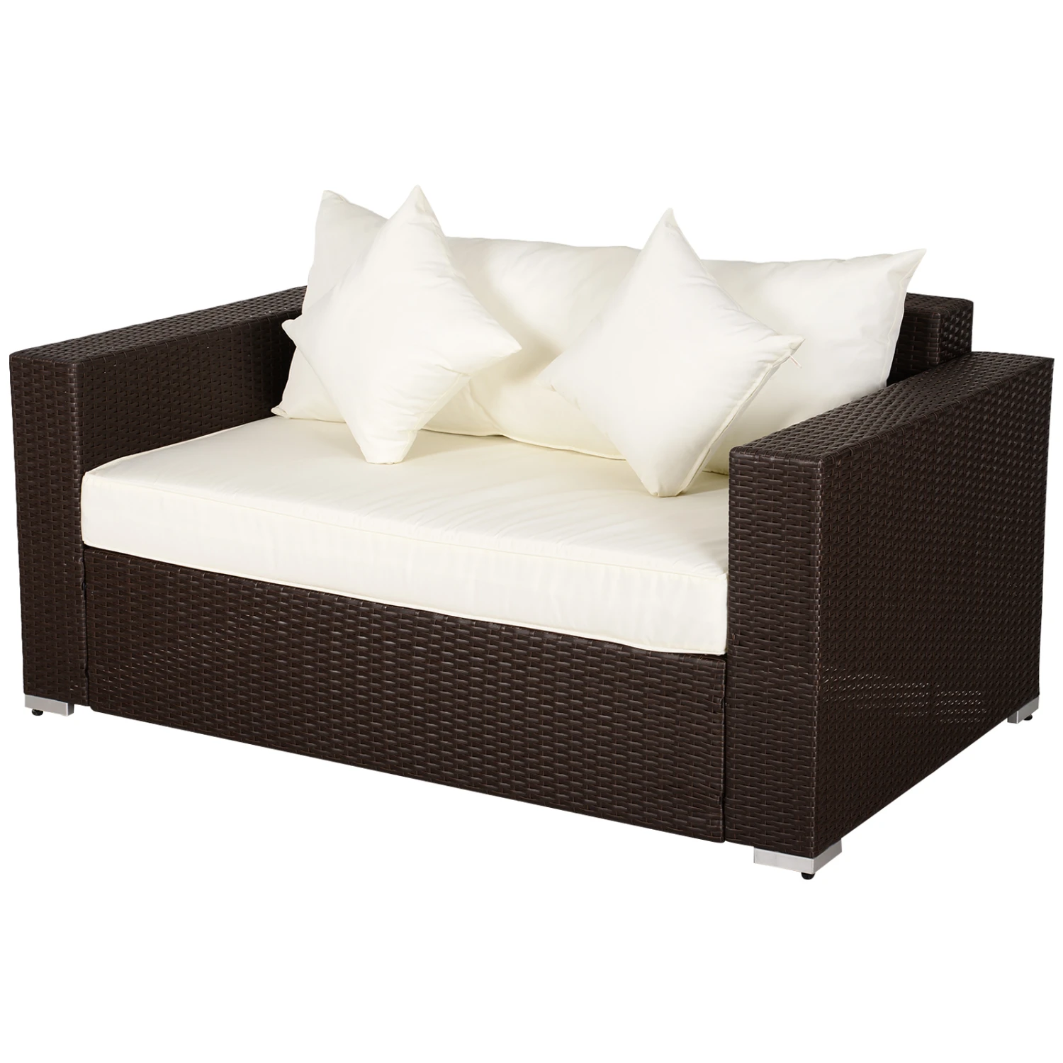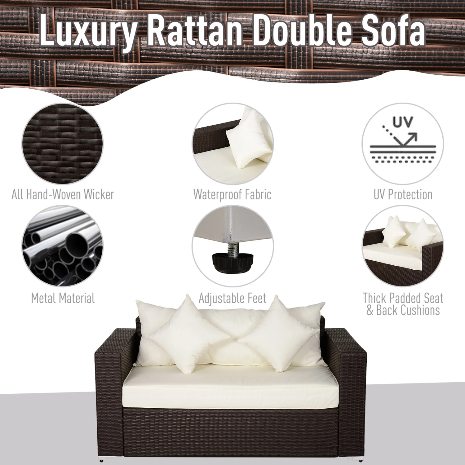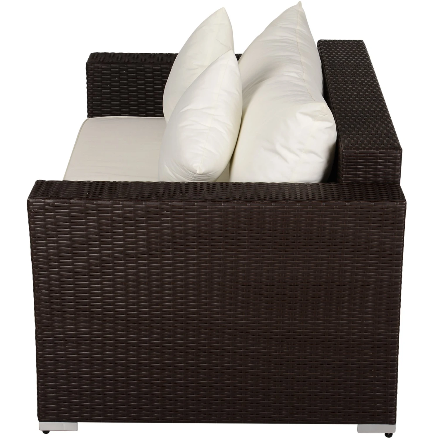 Forgo the traditional, and add a uniquely designed loveseat to your outdoor space. Featuring a modern while elegant style, our rattan couch not only gives you space a modern look but also offers incredibly comfortable lounging experience to 2 people. Constructed with beautifully wrapped hand-woven PE wicker with a sturdy steel frame, the sofa allows for hours of relaxation whenever you need it. Finished with thick padded water-resistant cushion and throw pillows, this piece is a perfect addition to your weekend relaxing moments.