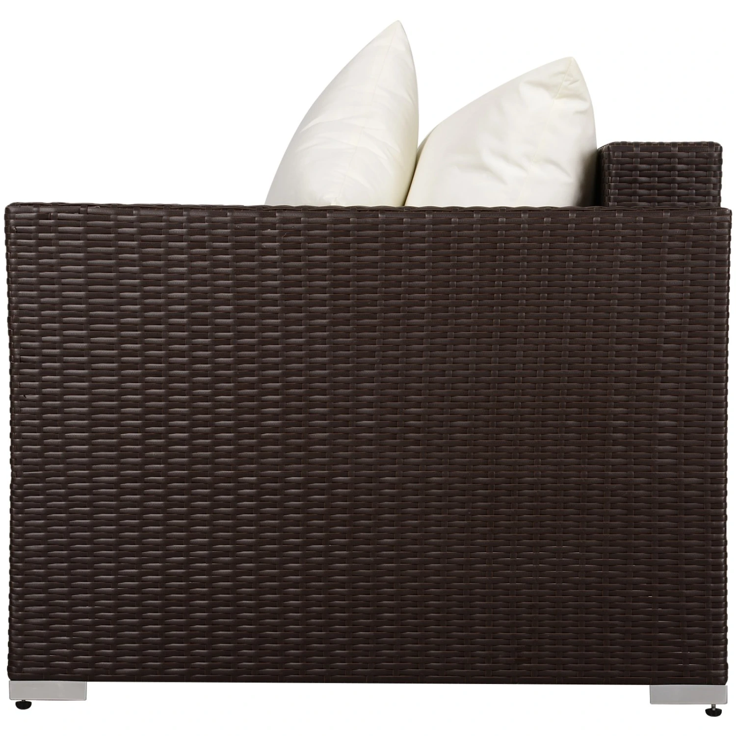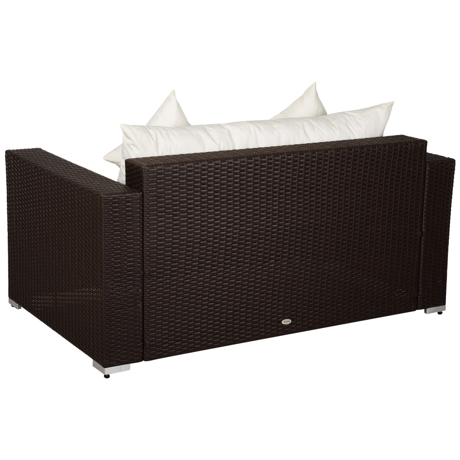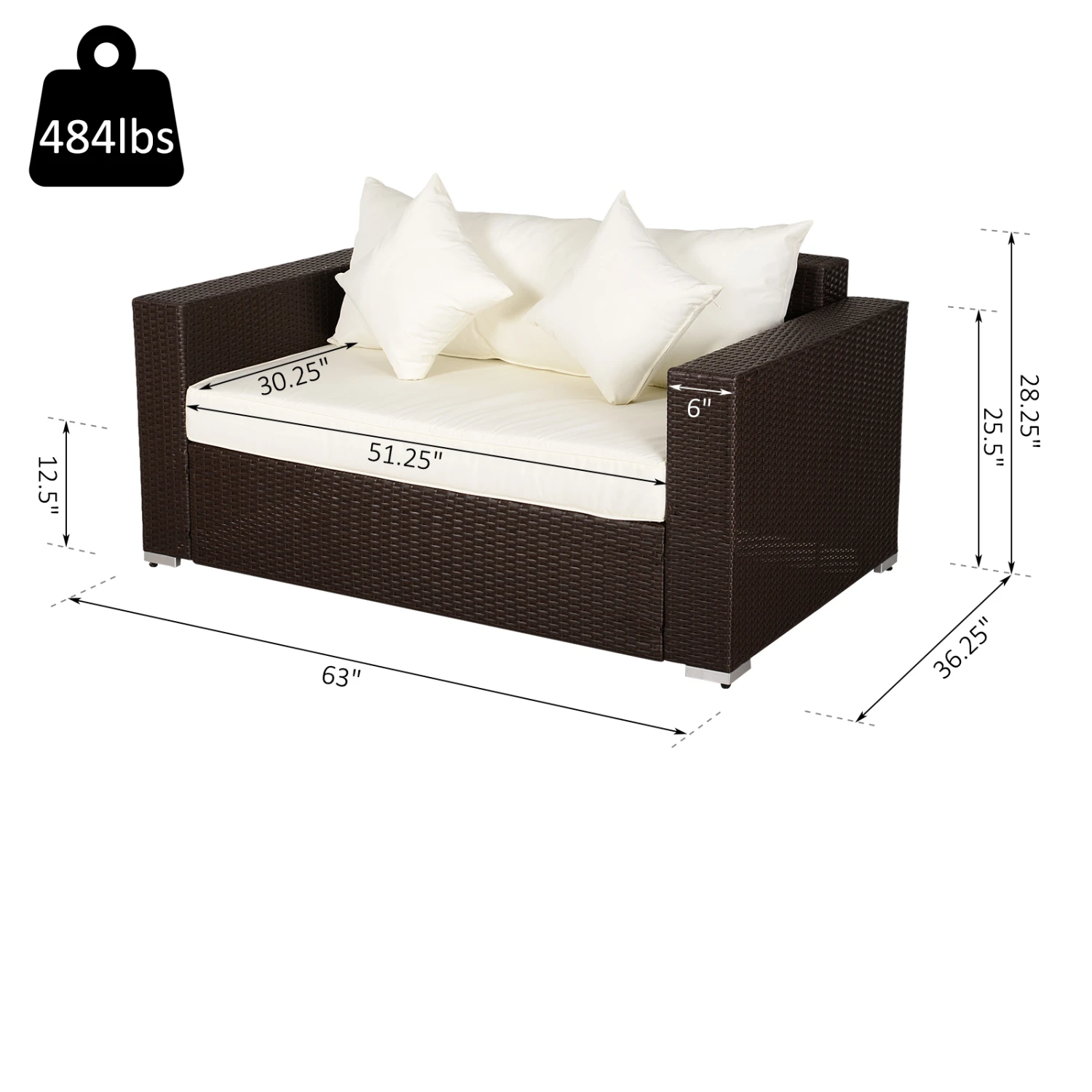 Forgo the traditional, and add a uniquely designed loveseat to your outdoor space. Featuring a modern while elegant style, our rattan couch not only gives you space a modern look but also offers incredibly comfortable lounging experience to 2 people. Constructed with beautifully wrapped hand-woven PE wicker with a sturdy steel frame, the sofa allows for hours of relaxation whenever you need it. Finished with thick padded water-resistant cushion and throw pillows, this piece is a perfect addition to your weekend relaxing moments.