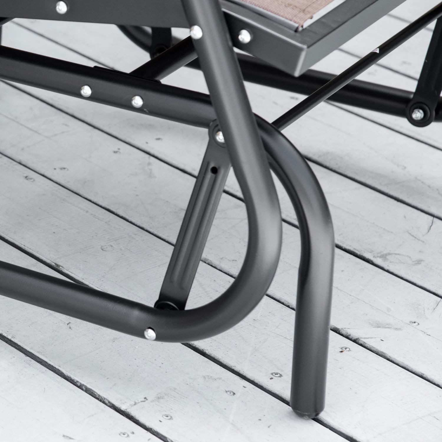 Glide through the summer with Outsunny. This outdoor patio glider offers form and function for any space outside: backyard, balcony, porch, pool, or garden; get gliding and sit in style. The seat of our outdoor glider chair is crafted from breathable mesh that stays cool in the summer sun and dries off fast. Sit back and take in the summer breeze without worry. Its frame is strong steel and it sits on nonslip foot pads to keep you from falling and stop surfaces from getting scratched.