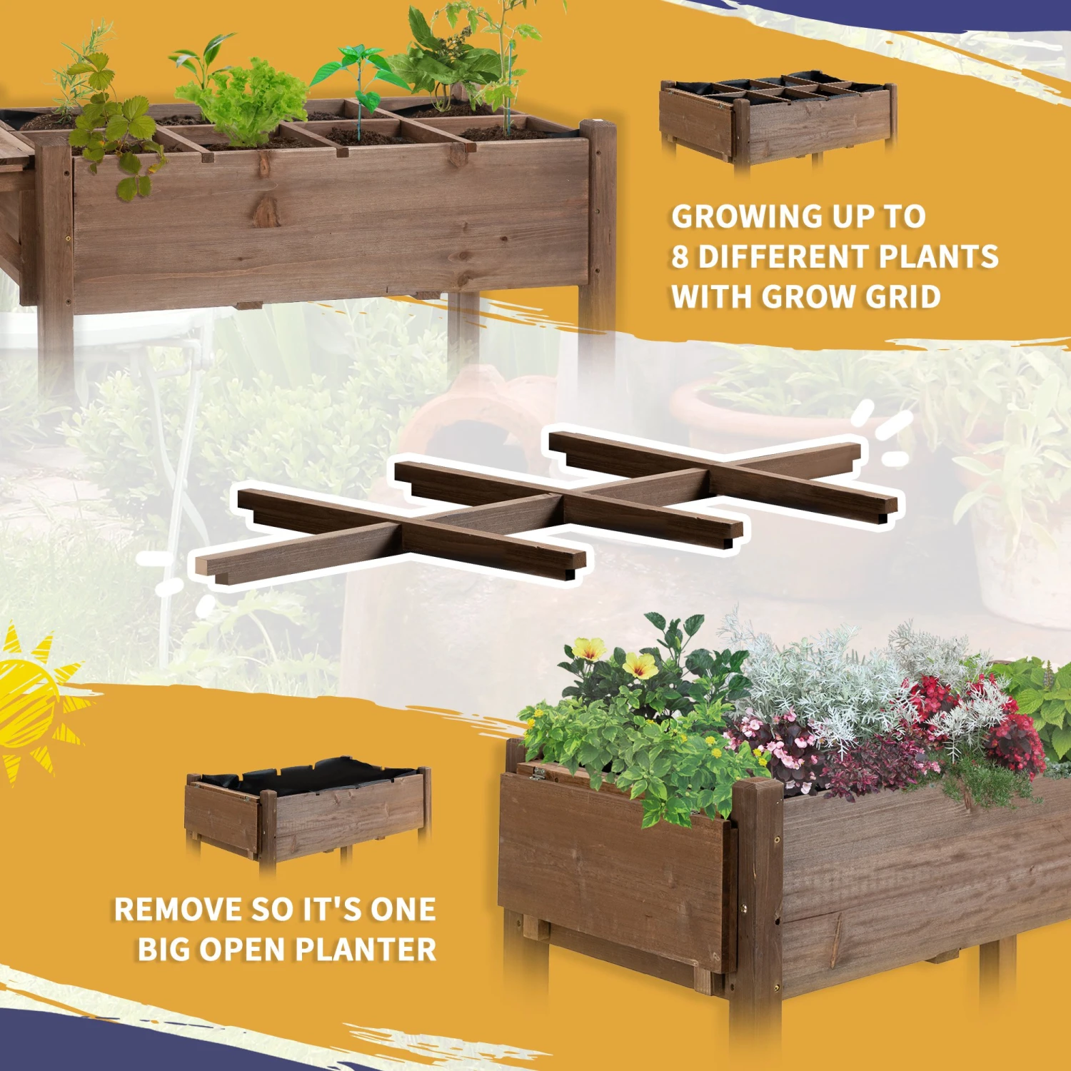 - – Spacious planting box with 8 areas for your plants