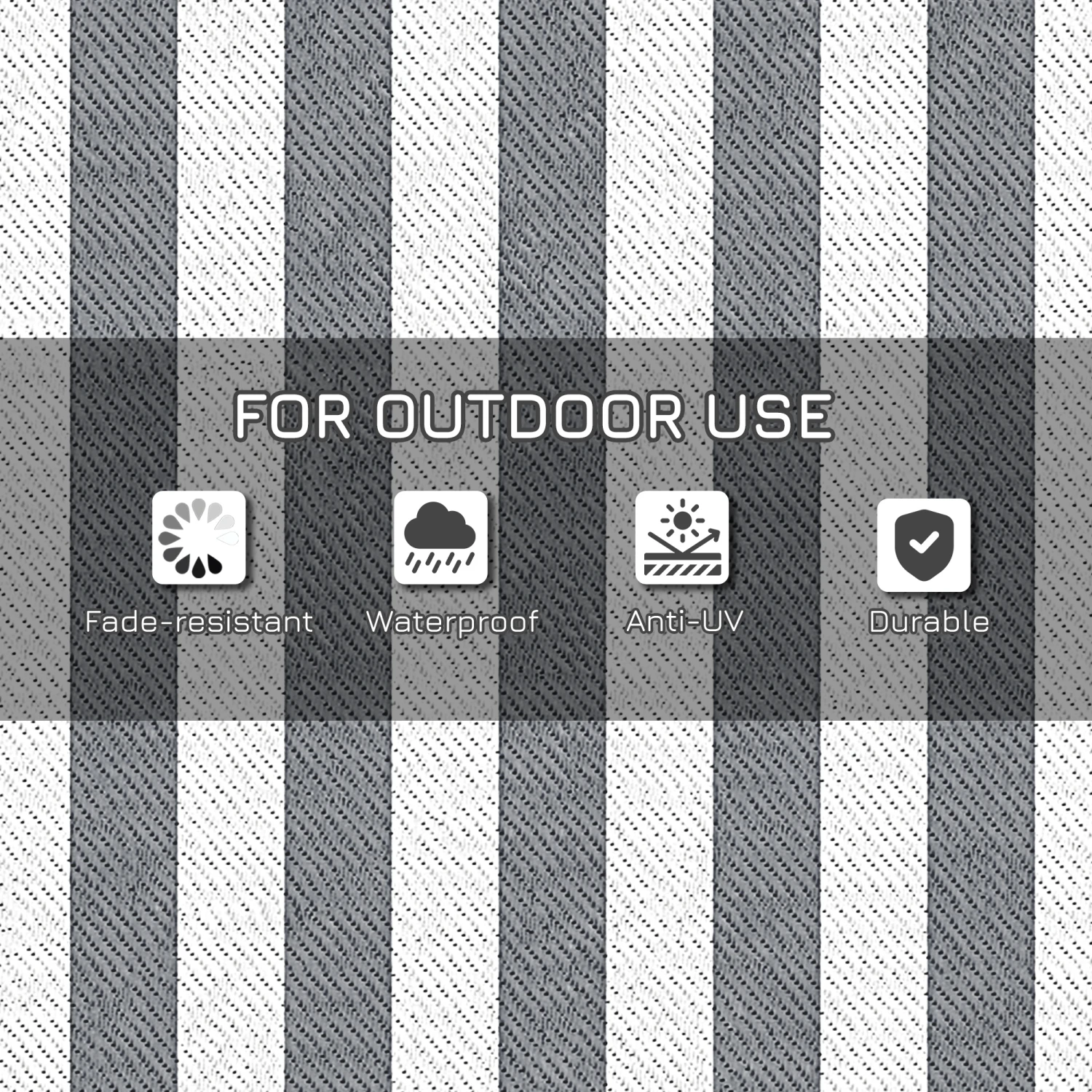 Camp out on carpet with Outsunny. This waterproof mat is a reversible rug that’s designed to handle dirt. Outdoor-ready, this rug really cleans up fast; sweep it, spray it, wipe it or wave it; its powerful polypropylene fibers stay dry and don’t saturate. Keep it in the camper, RV, or car it’s excellent for camping, beach barbecues, patio picnics, or anywhere you need it outside. The color is reversible, meaning you can flip it over to have a fresh side. Upholster the outdoors with Outsunny.
