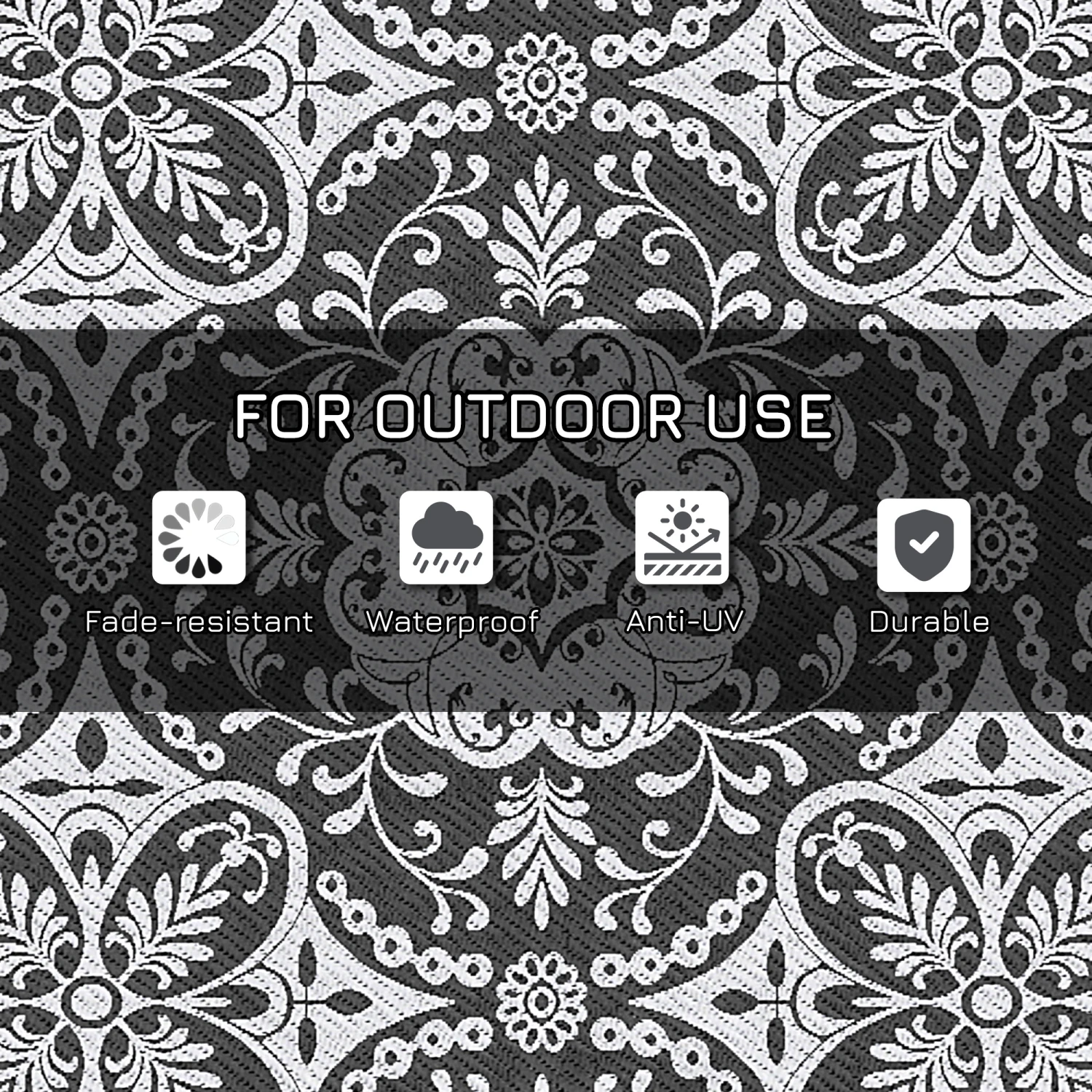 Camp out on carpet with Outsunny. This waterproof mat is a reversible rug that’s designed to handle dirt. Outdoor-ready, this rug really cleans up fast; sweep it, spray it, wipe it or wave it; its powerful polypropylene fibers stay dry and don’t saturate. Keep it in the camper, RV, or car it’s excellent for camping, beach barbecues, patio picnics, or anywhere you need it outside. The color is reversible, meaning you can flip it over to have a fresh side. Upholster the outdoors with Outsunny.