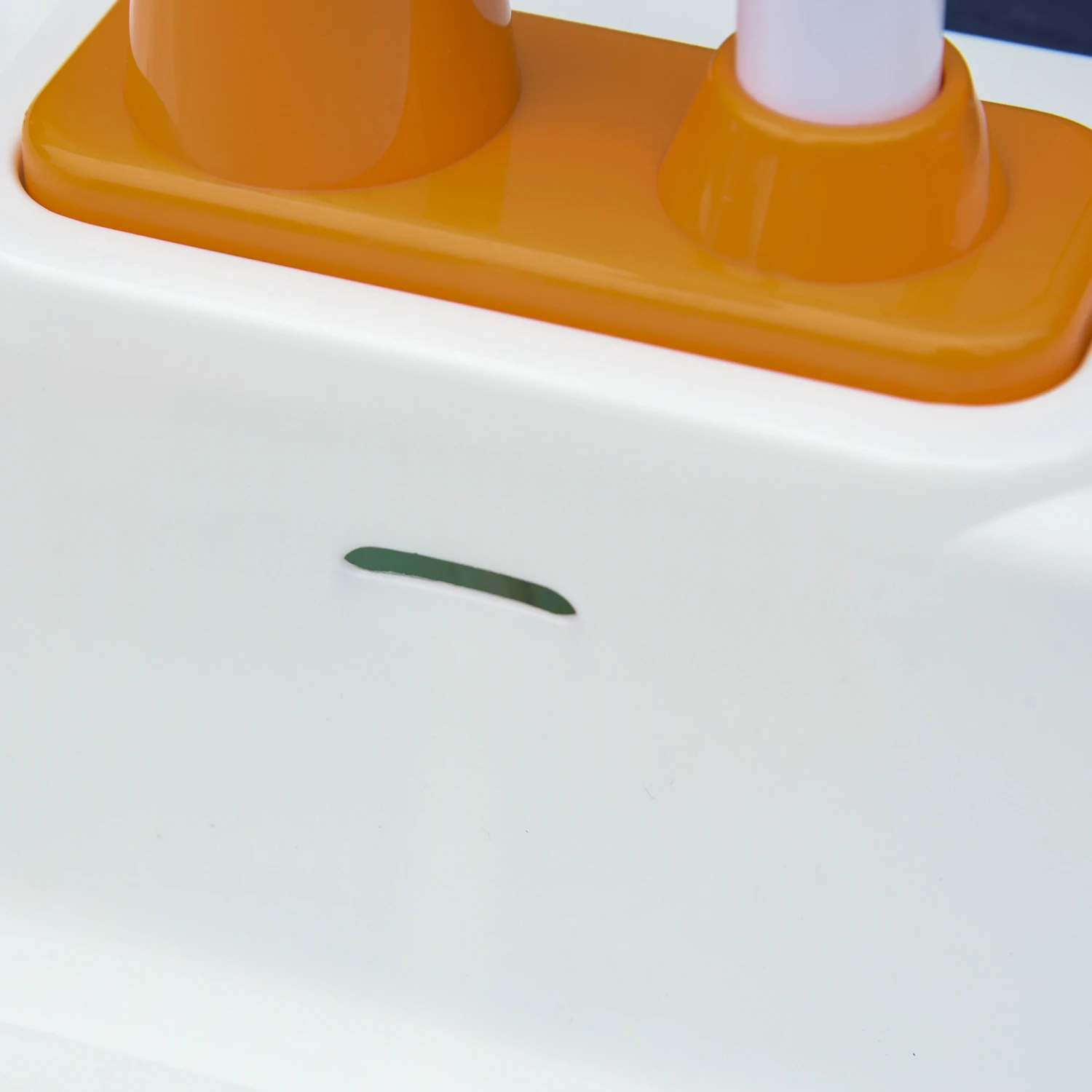 - – 14 pieces kitchen toys: 1 red plastic basket, 1 white water basin, 1 light blue plastic chassis, 1 push-on faucet, 2 light green plastic dinner plate, 1 light green cutting board, 1 red pepper, 1 Strawberry, 1 lemon, 1 green bell pepper, 1 corn, 1 carrot and 1 kitchen knife give children all the tools they need to play chef