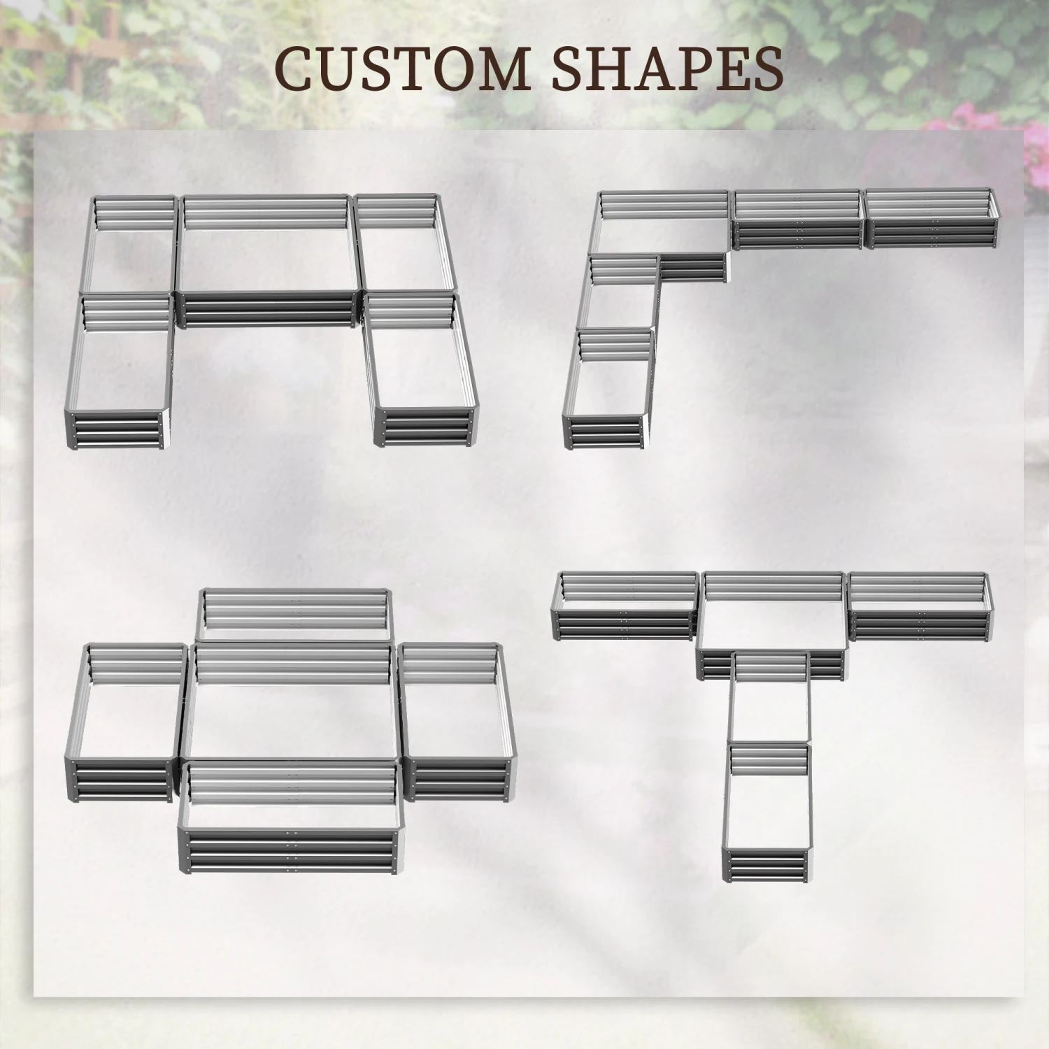 Outsunny is here to help raise your green thumb. These raised garden beds let you separate plants by soil type or variety to give you a stylish and practical backyard bouquet. With five in all and three shapes, you can arrange them limitlessly to suit your landscaping needs. Their open design lets you nourish new plants with special soil, and their open bottom design gives roots room to let them reach their limit. Get out, get growing, Get Outsunny.