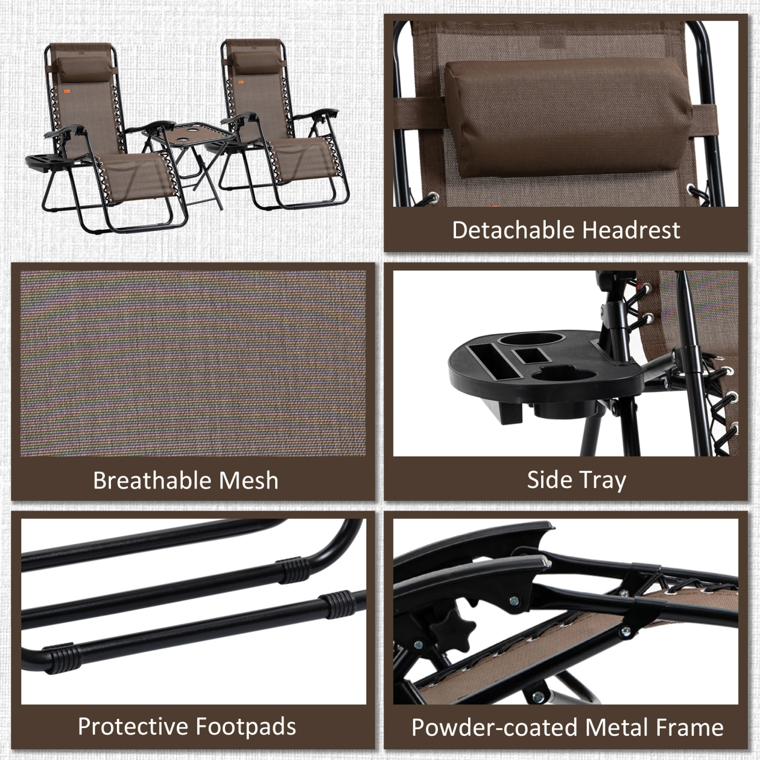 You want a table and chairs you can take on the road, but most sets seem stiff and small. Luckily Outsunny has a set to max not just portability, table space, or comfort but it all. Outsunny’s zero gravity chair set comes with a folding side table, and two table trays for six cupholder slots. The chairs feature :zero-gravity” bungee suspension for a form-fitting minimal-pressure seat. They have armrests, a pillow, and can recline to the angle of your choice. Get out, get comfy, get Outsunny.