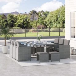 Outsunny 12″ Round Patio Outdoor Footstool, Garden Mosaic Accent Side Table, Plant Stand, Blue