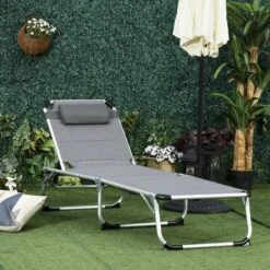 Outsunny Oxford Fabric Metal Frame Outdoor Pool Sun Lounger Lounge Chair 120°/180° – Brown