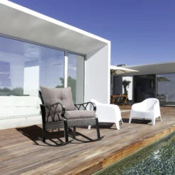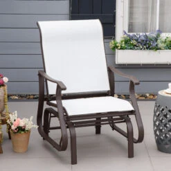 Outsunny Outside PE Wicker Reclining Padded Armrest Chair Contemporary Design Coffee