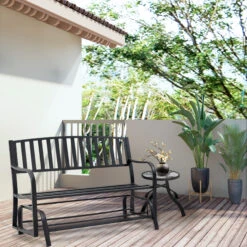 Outsunny Patio Garden Bench, Wooden Bench, Outdoor Bench For Vines/Climbing Plants, Natural