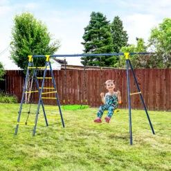 Outsunny Children’s Playground Set, Adjustable Ropes And Metal Frame For Stability