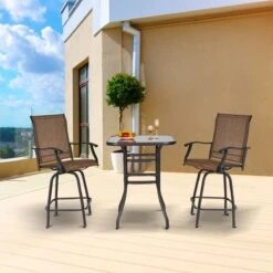 Outsunny 3 Piece Outdoor Patio Pub Bistro Table And Chairs Set – Black / Tan