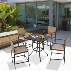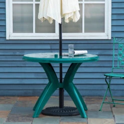 Outsunny 33″ Patio Dining Table Round Cast Aluminium Outdoor Bistro Table With Umbrella Hole – Black